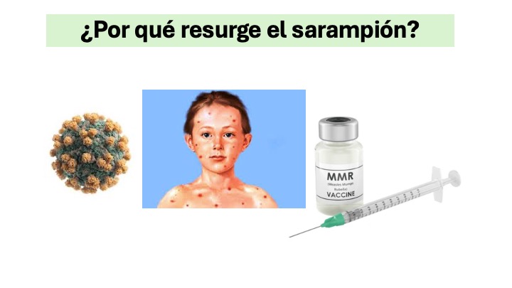 El sarampión es una enfermedad infecciosa producida por un virus ARN de 16.000 nucleótidos de la familia paramixovirus. Es un virus respiratorio, que se transmite con facilidad por vía aérea. Se estima que cada paciente contagia a un promedio de 12-18 personas susceptibles a su alrededor. Las complicaciones más graves son la neumonía y la encefalitis.